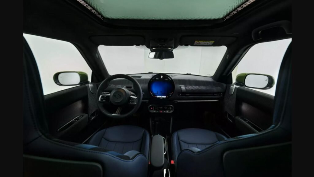 Di dalam, terdapat jok sporty Nightshade Blue yang memadukan kulit imitasi Vescin dengan bagian atas tekstil dua warna. Kabin juga dilengkapi rajutan khusus pada dashboard dan panel pintu, serta Signature Stripe pada roda kemudi. Menyempurnakan tampilannya adalah emblem Paul Smith dan kelinci bergaya di karpet lantai.