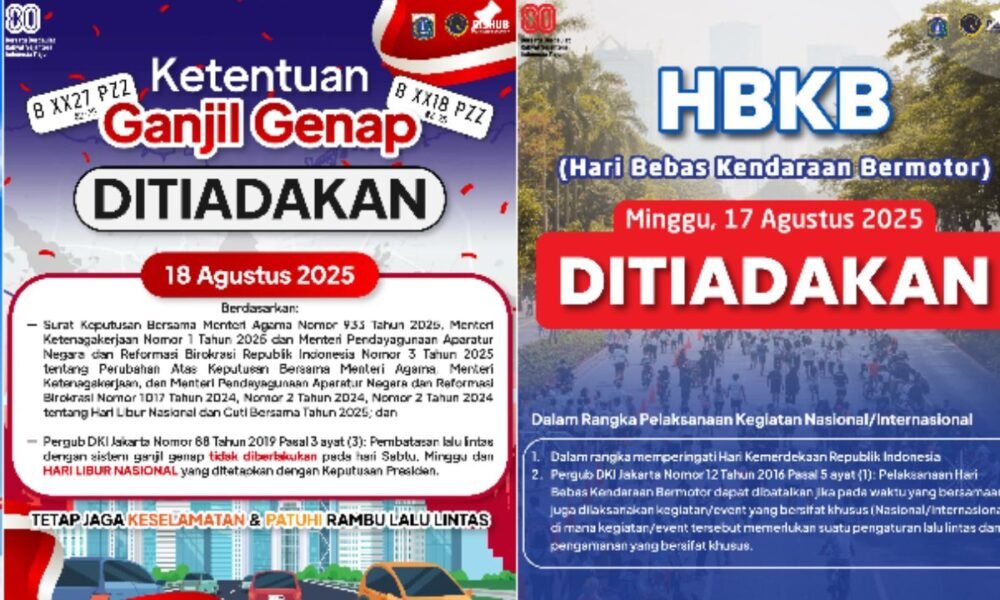 SocioLife, Jakarta (13/08/2025) Pemerintah Provinsi DKI Jakarta memastikan bahwa pelaksanaan sistem Ganjil Genap di berbagai ruas jalan Ibu Kota akan ditiadakan pada Senin, 18 Agustus 2025....