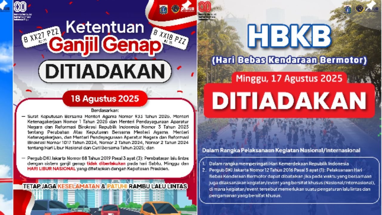 Cuti Bersama 18 Agustus 2025, Dishub DKI: Ganjil Genap Jakarta Ditiadakan - sociolifemedia.com